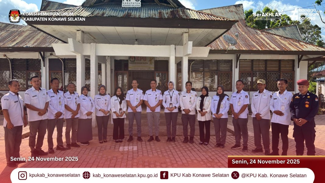 KPU Kabupaten Konawe Selatan melaksanakan Apel Pagi, 24 November 2025 yang dipimpin oleh Kasubbag Teknis Penyelenggara Pemilu dan Hukum, diikuti Para Kasubbag serta Staf ASN Sekretariat KPU Kabupaten Konawe Selatan.
